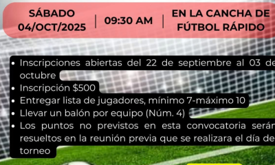 Zacapala, Pue. 24 de septiembre 2025 El próximo 4 de octubre de 2025 se llevará a cabo un torneo de fútbol rápido, categoría libre varonil, en...