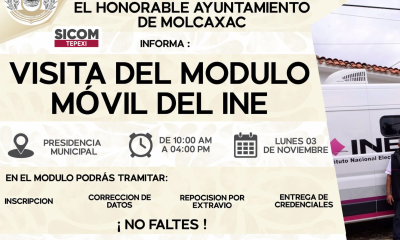 Molcaxac, Pue. 02 de noviembre 2025 El próximo lunes 3 de noviembre, el Módulo Móvil del Instituto Nacional Electoral (INE) visitará la cabecera municipal de Molcaxac,...