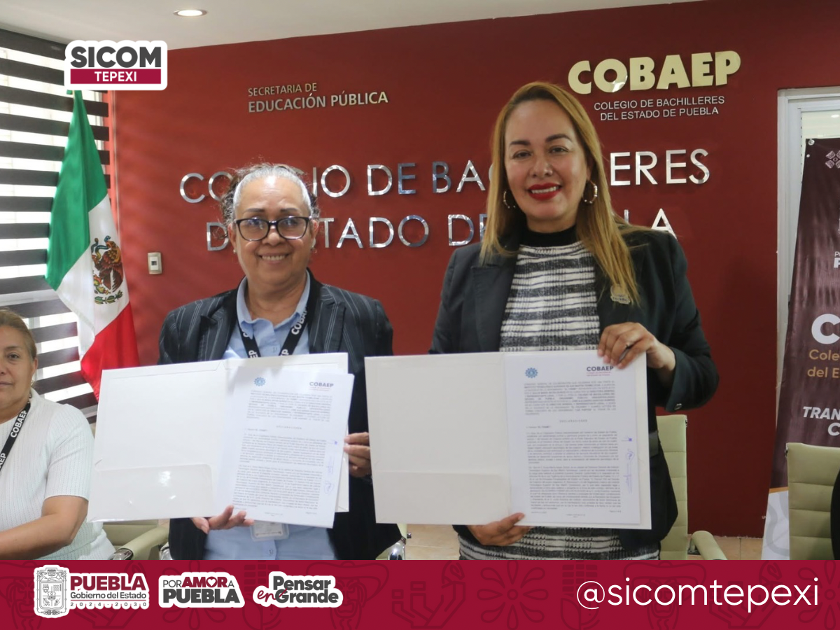 El Colegio de Bachilleres del Estado de Puebla (COBAEP) firmó un convenio de colaboración con el Instituto Tecnológico Superior de San Martín Texmelucan (ITSSMT), con el objetivo de fortalecer la formación académica, la vinculación científica y el desarrollo tecnológico de estudiantes y docentes. Este acuerdo, que tendrá vigencia de cinco años, contempla acciones como residencias profesionales, programas de educación dual y continua, bolsa de trabajo, proyectos de investigación, visitas formativas a empresas, además de apoyos y patrocinios en beneficio de ambas instituciones. Durante el evento, la directora académica del COBAEP, María del Rocío Meneses Uvera, destacó la visión del director general, José Alejandro Sánchez Ramírez, al impulsar lazos con instituciones de educación superior, lo que contribuye a posicionar al subsistema dentro del Sistema Nacional del Bachillerato al ofrecer opciones de capacitación orientadas al trabajo. En su intervención, la directora del ITSSMT, Dulce Reyes Quiroz, resaltó que este convenio abre la puerta para que los egresados de nivel medio superior puedan ingresar a carreras de ingeniería con un enfoque actualizado y profesional. Con este esfuerzo, respaldado por el Gobierno del Estado de Puebla que encabeza el gobernador Alejandro Armenta, se generan más oportunidades para que la juventud poblana acceda a una educación de calidad y con cercanía al sector productivo, reforzando así su preparación para el futuro laboral.