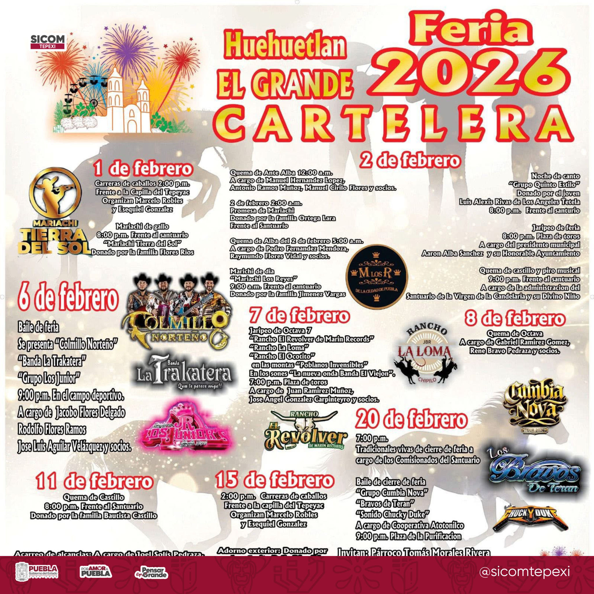 Fue presentada de manera oficial la cartelera de actividades de la Feria Huehuetlán el Grande 2026, una de las celebraciones más importantes y tradicionales del municipio, la cual se desarrollará durante el mes de febrero, integrando eventos religiosos, culturales, artísticos, deportivos y recreativos dirigidos a la población local y a visitantes de la región.