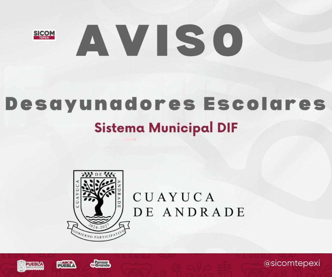 El Sistema Municipal DIF de Cuayuca de Andrade informó que este martes 16 de diciembre se llevará a cabo la entrega de las despensas que quedaron pendientes en la última distribución de apoyos alimentarios. La entrega se realizará a las 12:30 p.m., en el área ubicada frente a la Presidencia Municipal, lugar designado para facilitar el acceso y la organización de las y los beneficiarios.