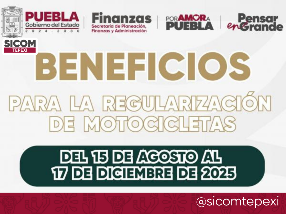 El Gobierno del Estado de Puebla anunció un programa especial de facilidades fiscales y administrativas para la regularización de motocicletas, con vigencia del 15 de agosto al 17 de diciembre de 2025, en el marco de la estrategia de Seguridad Pública y en concordancia con la Ley de Movilidad y Seguridad Vial.