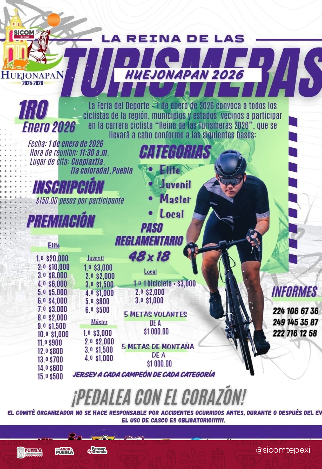 Como parte de las actividades contempladas dentro de la Feria del Deporte, el municipio de Huejonapan emitió la convocatoria oficial para la carrera ciclista “La Reina de las Turismeras 2026”, un evento deportivo que busca fomentar la práctica del ciclismo, la sana competencia y la convivencia entre deportistas de la región, así como de municipios y estados vecinos.