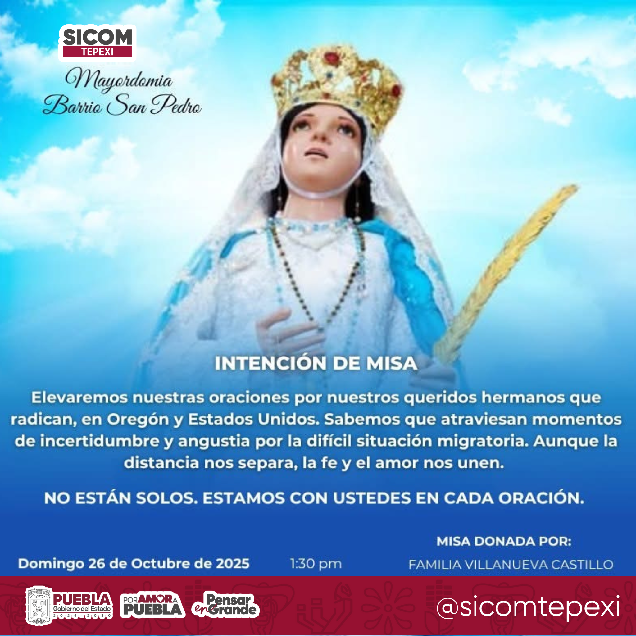 Ante la difícil situación migratoria que atraviesan muchos connacionales, la familia convocó a las y los habitantes de Molcaxac a sumarse a la misa dominical, donde se elevarán plegarias por su bienestar, fortaleza y protección.