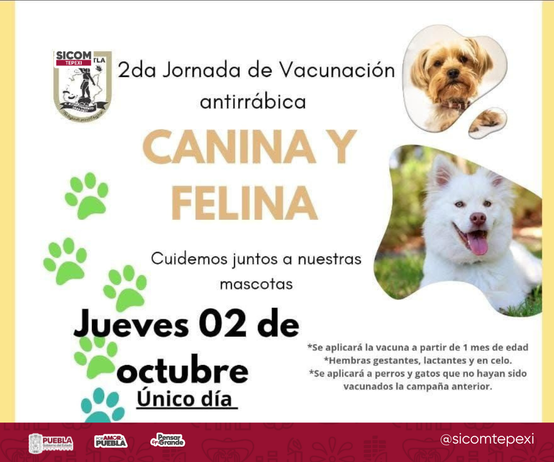 El Ayuntamiento de Ixcaquixtla, en coordinación con la Regiduría de Salubridad y Asistencia Pública, llevó a cabo una jornada de vacunación antirrábica dirigida a perros y gatos el jueves 2 de octubre.