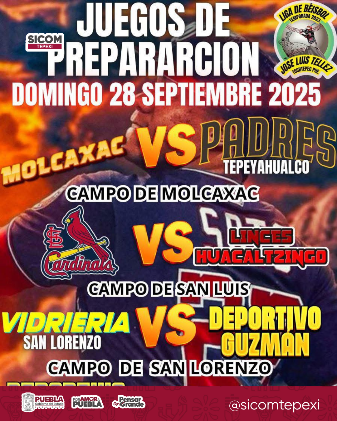 Este domingo 28 de septiembre de 2025 se llevarán a cabo encuentros de preparación en diferentes sedes de la Liga de Béisbol “José Luis Téllez”, con el objetivo de mantener el ritmo competitivo de los equipos participantes.