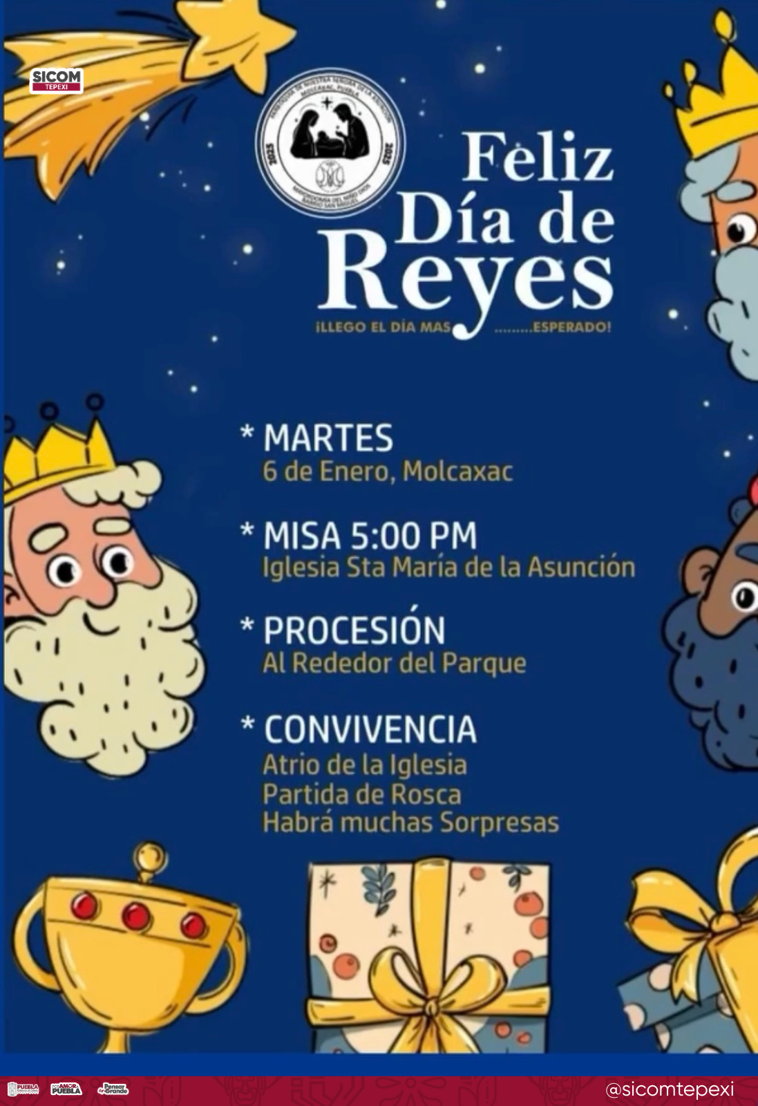 Con el propósito de fortalecer las tradiciones, promover los valores familiares y fomentar la convivencia comunitaria, este martes 6 de enero se llevará a cabo la celebración del Día de Reyes en el municipio de Molcaxac, con un programa de actividades religiosas y sociales dirigido a la población en general.