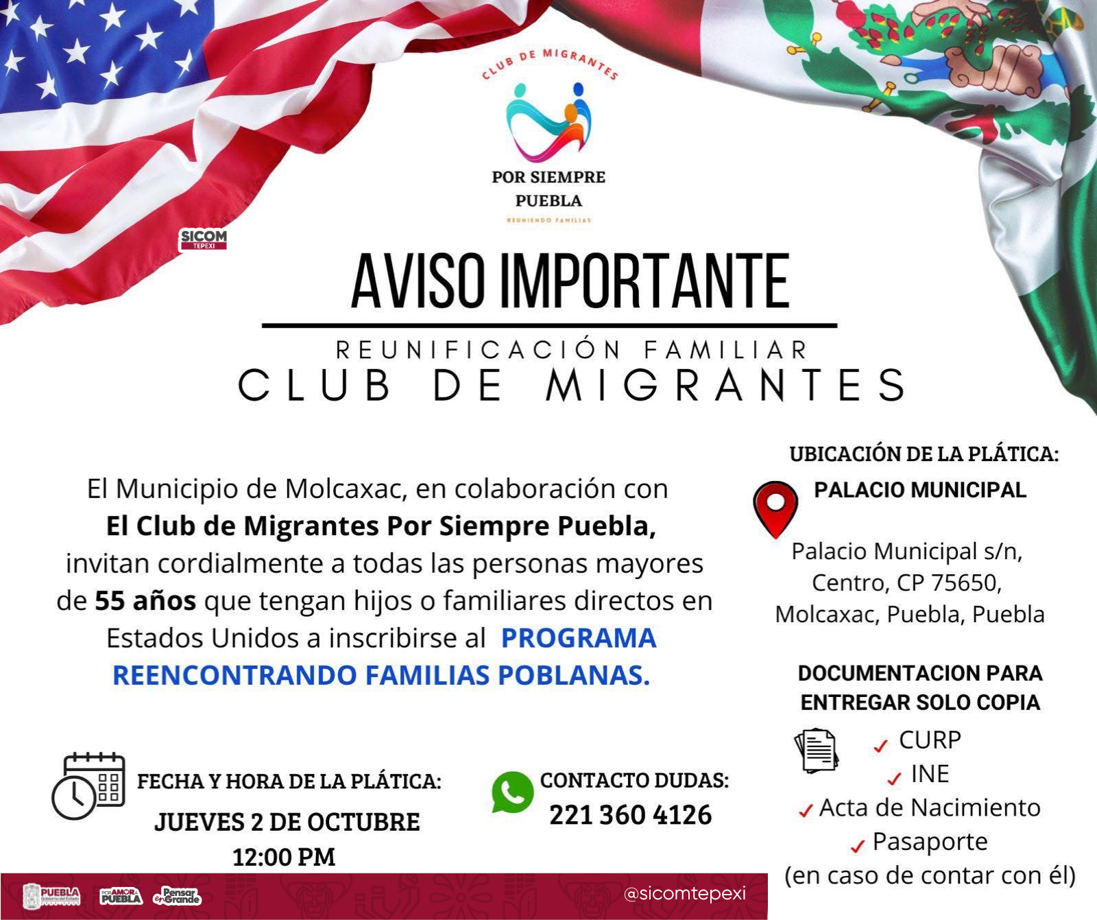 El municipio de Molcaxac se prepara para recibir la Reunión Familiar del Club de Migrantes, un evento que reunirá a familias, autoridades y representantes de la comunidad migrante con el propósito de fortalecer los lazos de unión y mantener viva la identidad cultural.