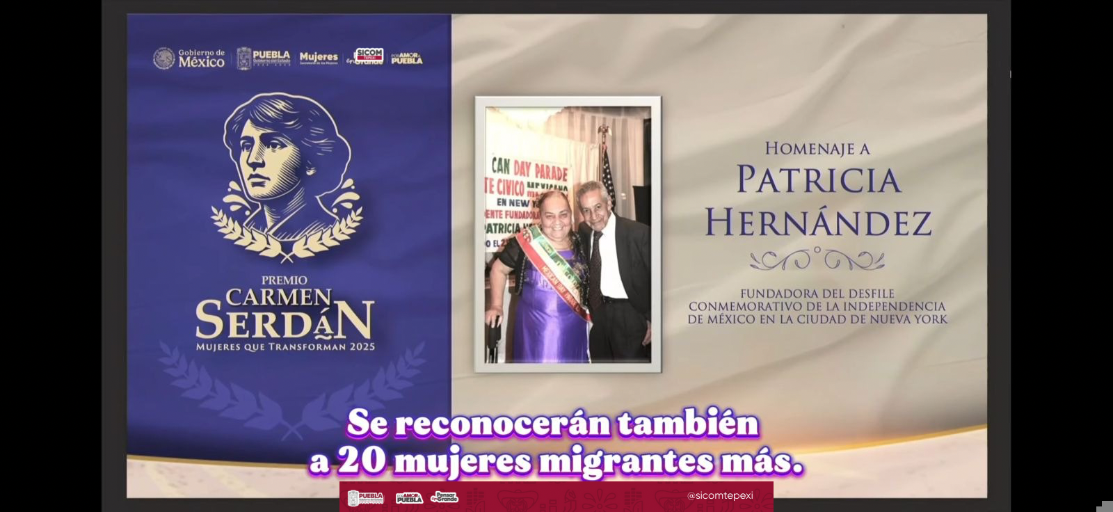 Entre las 21 seleccionadas sobresale Patricia Hernández, mujer poblana migrante cuyo esfuerzo y compromiso han trascendido fronteras. Su labor en favor de las y los connacionales, así como su trayectoria de acompañamiento y defensa de los derechos de la comunidad migrante, la han convertido en un referente de solidaridad y resiliencia.