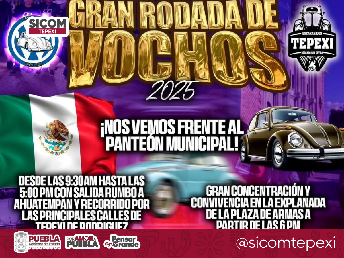 El próximo martes 16 de septiembre, el grupo Escarabajos Tepexi realizará la Gran Rodada de Vochos 2025, como parte de las actividades festivas en el municipio.