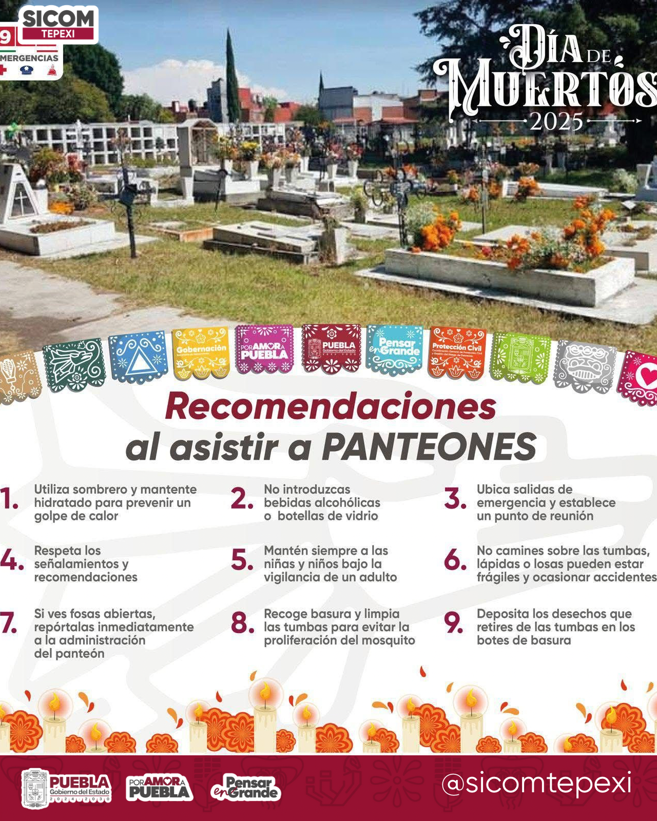 Las autoridades municipales invitaron a la población a mantener las medidas preventivas necesarias durante estos días de celebración, con el propósito de evitar accidentes y garantizar el bienestar de todos los habitantes. Entre las recomendaciones destacan colocar las veladoras en lugares seguros, evitar dejarlas encendidas sin supervisión, mantener vigilados a los niños y mascotas, no conducir bajo los efectos del alcohol y mantener limpios los espacios donde se coloquen los altares.